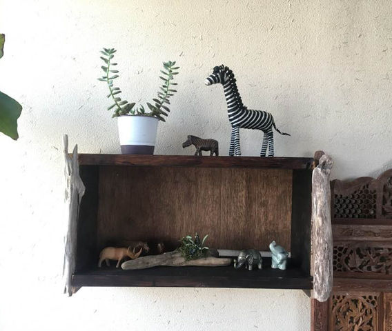 ・自然あふれる山から枝を利用した収納棚